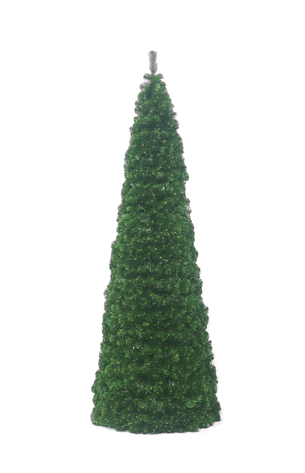 The branchless Cone Tree is a quick and easy solution for decorators and homeowners alike. Simply remove from the box, and put the tree into place, and you have your tree! No need to shape branches or adjust it! A favorite for commercial displays.