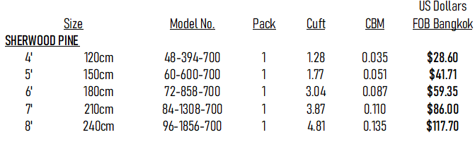 • Size: Available from 4′ (120 cm) to 8′ (240 cm)